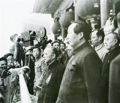 1949年10月1日,毛泽东、李济深等在天安门城楼上。