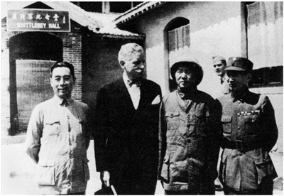 1945年,毛泽东、周恩来、张治中和赫尔利在延安合影。