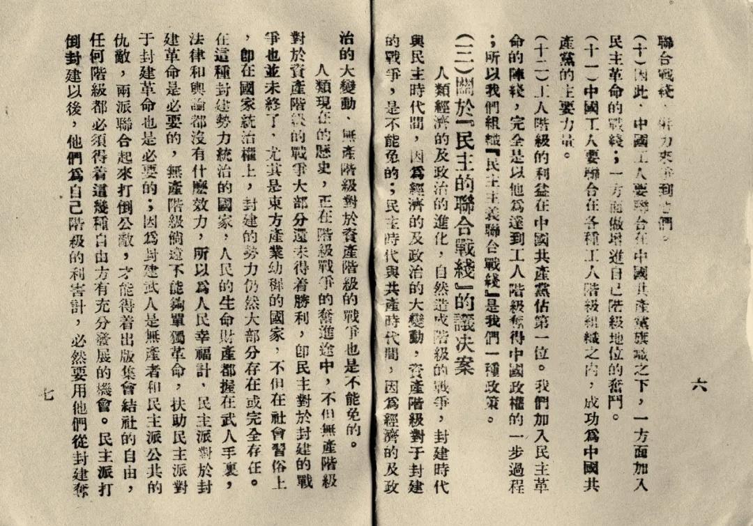 中共二大通过的《关于“民主的联合战线”的议决案》。